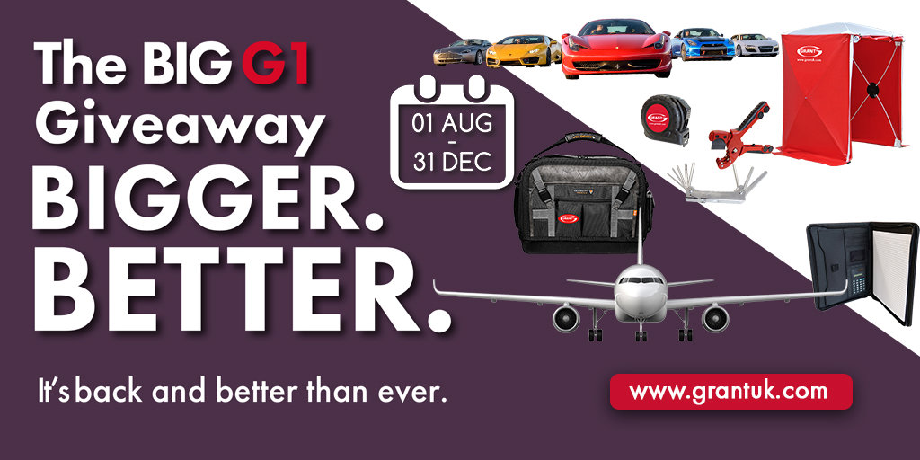 Earlier in the summer, Grant UK announced that their ‘Big G1 Giveaway’ was making a return for a second year. Following the same format as the 2018 promotion, this year’s ‘Big G1 Giveaway’ offers G1 Installers the chance to win prizes every month between August and December by simply registering their Grant installations via their Portal or G1 Click accounts. With five monthly prize draws, a new ‘Superdraw’ and every Grant product eligible for entry, the ‘Big G1 Giveaway’ makes winning easy and straightforward for G1 installers.