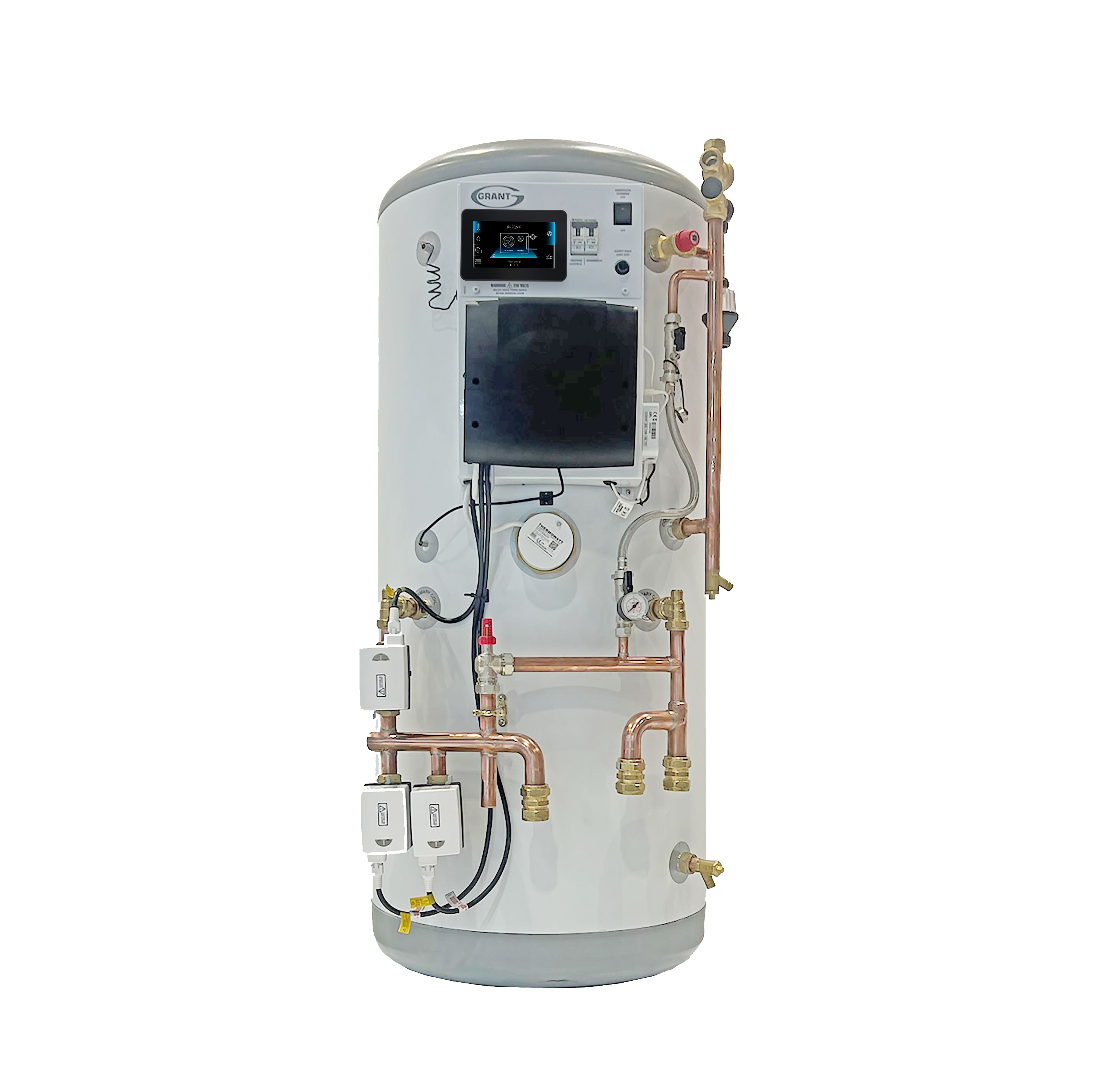 Quick Recovery cylinders are suitable for installation with both traditional and renewable heating systems so they can be fitted as part of a package with either a Vortex oil boiler, an Aerona³ air source heat pump or a Grant Solar Thermal System. When an installation involves more than one heat source, such as a heat pump and solar thermal system, both systems can be combined using one of the twin coil Quick Recovery cylinder models.