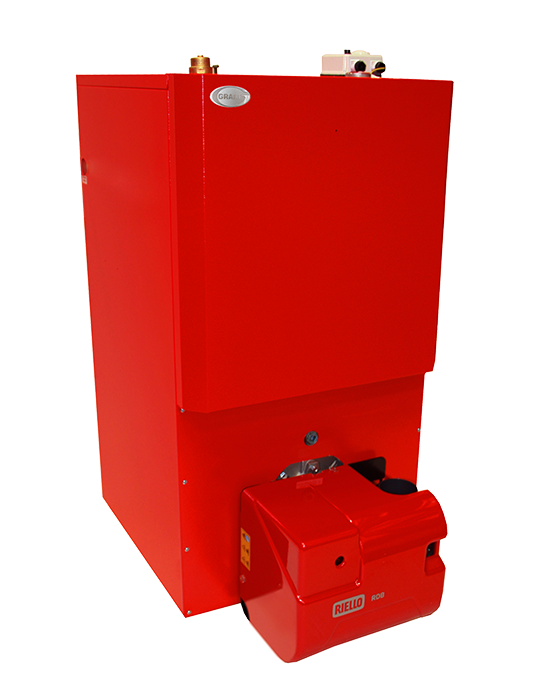 Featuring an externally mounted Riello RDB burner and dual thermostat, Grant Vortex Boiler House models are ideal for garage, cellar and plant room installations.